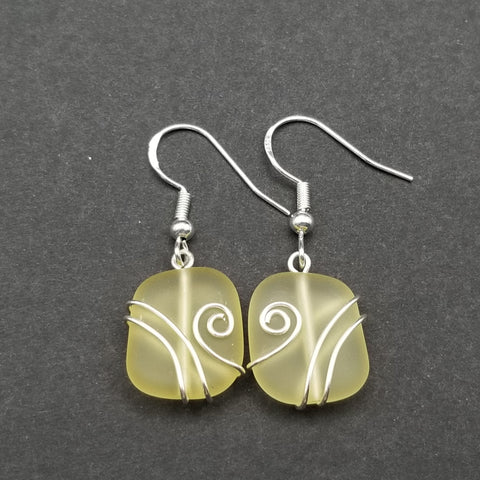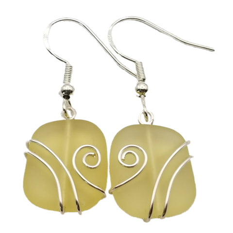 Hawaiian Jewelry Sea Glass Earrings, Wire Wrapped Yellow Earrings, Sea Glass Jewelry Birthday Gift (November Birthstone Jewelry)